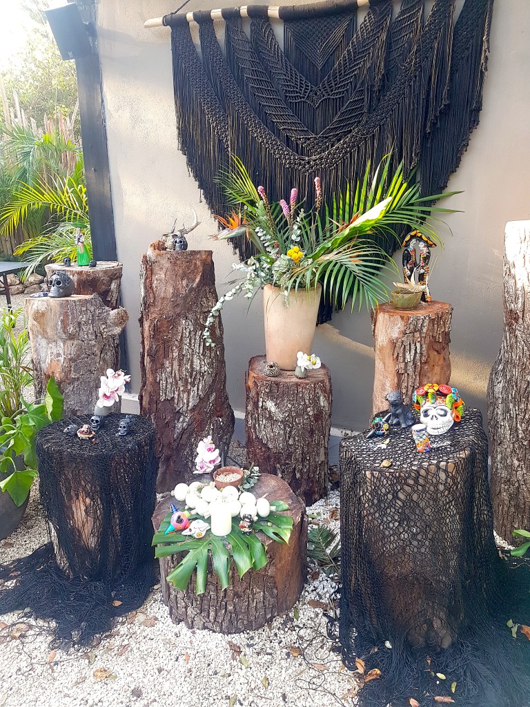Down the Yucatan peninsula and to the ancient mayan ruins we ventured. Tulum is one of the most gorgeous places I have ever had the pleasure to visit. We rocked up to our accommodation which was situated in some back streets just outside the main area of Tulum. This place is called Bardo and it is the most favourite place I have ever stayed in. It was relaxation heaven. Its only a few months old but you can tell so much love and passion went onto creating this modern resort and it was highly rated online. It only has 25 guest rooms so is nice and quiet and feels like a spiritual oasis. Firstly, the front desk lady was just gorgeous, I could tell she genuinely loved her job and really wanted us to share her love for the place. She looked after us so well, walking us through a tour of the resort, showing us the pool, the ‘ofrenda’ for ‘dia de muertos’ which is the ‘Day of the Dead, which is a holiday celebrated in Mexico to honour and remember those that have passed. At Bardo they actually give offering all year round and have a perpetual shrine to their dead at the resort. She also showed us the area where they have daily yoga (What!?! Amazing!) and weekly sound healing (if you read my previous blog you’ll understand why I was excited). The rooms are accessible down a stone path and each one branches off as you walk down the path, you walk through a bamboo walkway and there is your room, there’s a small pool with stone steps that you have to walk over to get inside. It’s perfectly silent and just the sound of birds chirping, it’s like we are lodging in the jungle, complete with an outdoor shower that augments the feeling of living in the wild. I do find it ironic how much I enjoyed the outdoor shower when this is commonplace when camping or living off the land where rainwater is your only source of freshwater. Maybe this highlights how disconnected we are from nature and how deep down we yearn to get back to that.
