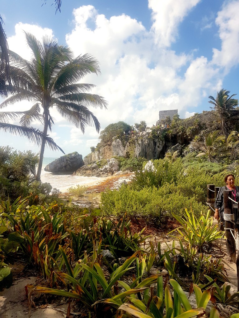 We left the confines of our newly found sanctuary to head to the Mayan ruins of Tulum. We file in behind the other hordes of tourists, feeling very much like sheep being herd. The ruins are worth it though, wow they are spectacular! Set to the backdrop of white sands and blue waters Tulum ruins are situated right on the coastline. While they don’t have a pyramid the size of Chitzen Itza, the ruins here seem more like they were built to live in. It was very hot and busy but we did our best to scout all the little buildings hidden in this place, even coming across an iguana showing off his ability to get close to the ruins when we are held back by a fence. I think if I was a Mayan I would definitely choose to live in Tulum, being so close to the beach and the view is absolutely breathtaking. We follow the path down to the beach and walk along to our snorkelling charter feeling the soft white sand between our toes looking at the crystal blue water rolling in. We hop on a tour boat and head out into the water, they take us along the coastline to get a view of the ruins from the water, wow! Imagine being a sailor back in the day and sailing up to see that. Actually, we found out later they would not have seen that, they would have capsized. Apparently the reef was almost impenetrable except for a very small path through the reef. One of the buildings has two windows, one is a square and the other a rectangle and they use these windows to navigate through the reef. The Mayans really were a sophisticated and intelligent civilisation. We then headed out into the reef for a snorkel. There was a strong surf break over the reef making the swim out difficult, but also so incredibly fun! Getting out to the reef we were fortunate enough to see a sting ray and a sea turtle as well as many fish. This was beautiful, what was not so beautiful was the state of the reef when we got out to it. A lot of it was bleached or already dead and there was clear evidence of coral disease on some of the bigger brain corals. It’s hard to see such a beautiful beach tainted by a struggling system hidden beneath the waves…