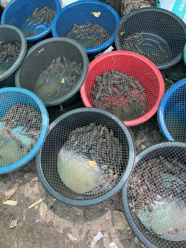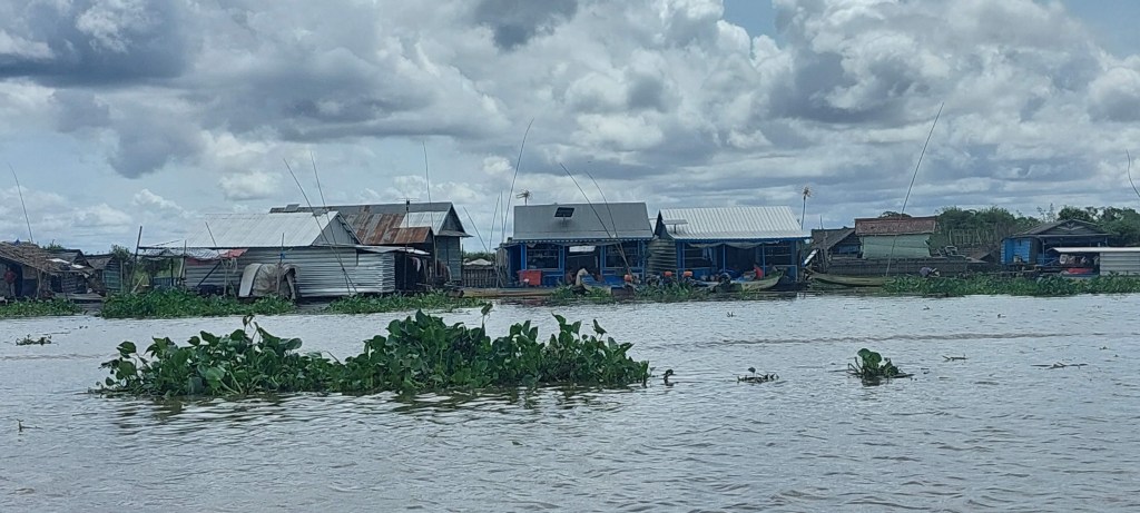Landing in Phnom Penh was so exciting, the city is a buzz, so much traffic, colour and people. I was reminder of the characteristic sound of car horns signalling that someone is about the drive past, not that they are annoyed at your driving (like in Australia). Phnom Penh was short lived, and our first real Cambodia experience came in the form of a home stay in floating villages on Tonle Sap River. These villages use bamboo or empty drums under their house so that they float on the water and during the wet season all the boats need to be securely tied down so that the houses do not float away with the influx of water. These houses are a huge change to the lavish styled homes I observed in Berlin and Lindau, they are built by hand using the materials available and comprise usually one large room and a bathroom (long drop). The people here rely heavily on fishing the river to sustain themselves and make a living. They also weave baskets and bags from an invasive river plant (water hyacinth) and farm crocodiles, rice (behind the river houses), chilli, fruits and vegetables. The students helped the villagers set up fishing nets and collected them at the break of dawn the next day. The type of fish caught was rather eye opening, anywhere else they would have been thrown back into the river as being far too small and yet here they were kept, there wasn’t another choice. When it’s a decision between eating that day and ensuring the fish population is sustained, you can be sure they will choose the former – I would. If this wasn’t enough the crocodile farming was another intense experience. Here we had an apex predator, evolved over millions of years to be the perfect predator and we reduced them to cages and their babies to buckets. I say we, because this is not fault of the Cambodian people, we, in our privileged lives have the blame. These people have no alternative way to find income and support their families, and we don’t help and then are abhorred they do these things. These crocodiles also used to sell for $1000 USD but after COVID they are only selling for $40 USD. This is an unbelievable drop in price, that is devastating for the people relying on this income. All this in just the first few days of being here… on a happier note the visit to Angkor Wat after the village stay showcased another side of Cambodia, and while it was the more touristy side it was stunning and a nice moment away from the environmental issues.